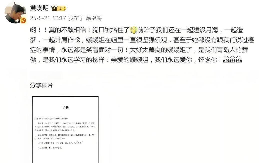 如今朱媛媛已经去世了七个多月了,却突然传来了一个喜讯,原来她给我们留了“最后的礼物”。突然的离世如今再次提起媛媛姐,应该还是有很多人难以释怀,尤其是辛柏青,他至今也没有把自己的社交平台账号上的头像给换下来,最后一条动态也停留在了2025年的5月21号,也是就是他发布媛媛姐讣告的这条动态。